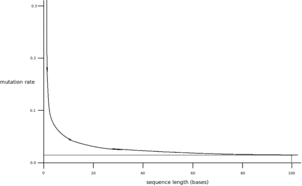 Following graph shows sustainable RNA size based on the mutation rate (1 - replication fidelity):