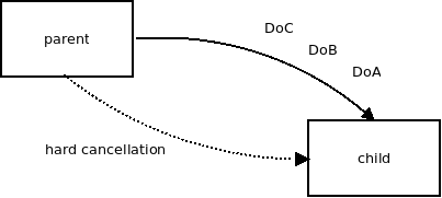 Consider a case where the parent coroutine sends the child coroutine a stream of tasks to process. It does so via a channel. It may send DoA, DoB and DoC requests. Then it hard-cancels the child. Hard cancellation is supposed to be immediate and so the child coroutine exits even though DoA, DoB and DoC haven't been processed yet.