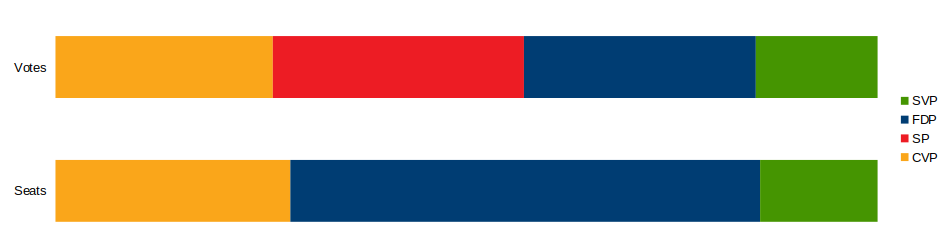 In any case, CVP contacted SP and asked them to support their candidate the next time one of the FDP councilors resigns. In return, they've promised that the new councilor would resign once another FDP councilor resigned. That would open space for two SP councilors. CVP itself would, in the long term, gain no additional seats but, as already explained, they would become the decisive factor between the political left and the political right. Social Democrats accepted the deal.