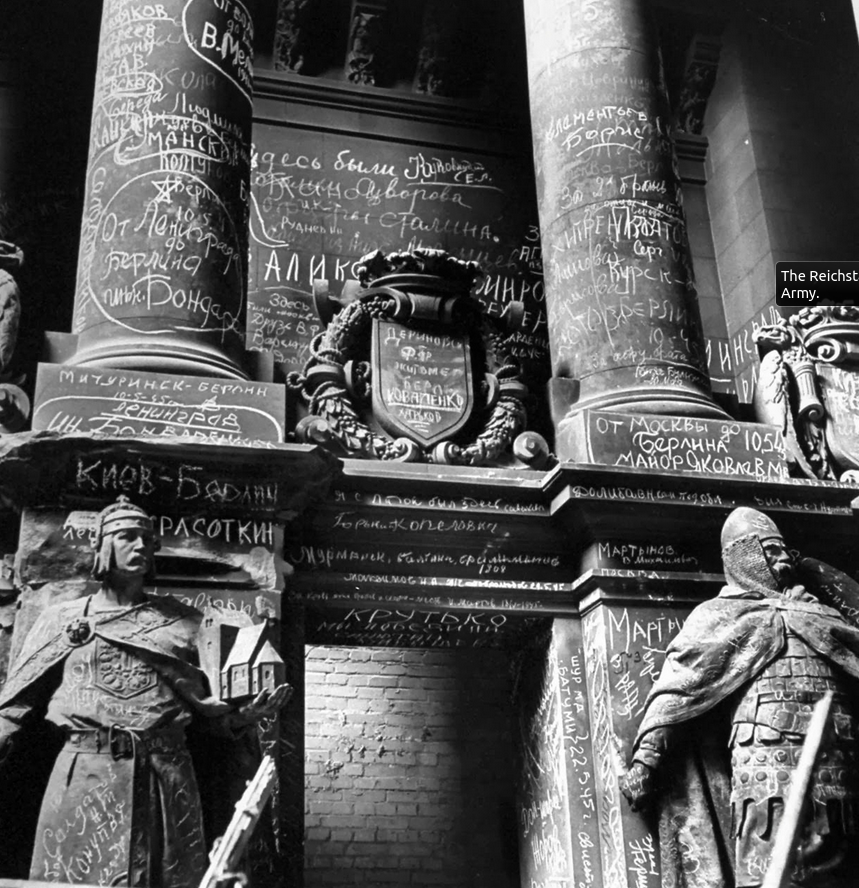 After the unification of Germany, when the Reichstag was being repurposed to become the seat of the parliament once again the builders drilled a hole into the outer wall and discovered that the old Russian inscriptions were still there, untouched.