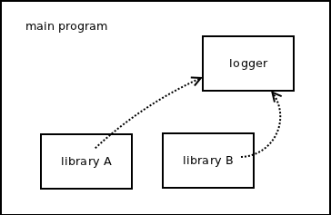 Let's have a look at a concrete example. Imagine that the main program creates a logger object (a PULL socket that writes all received messages to the disk) and wants all the modules loaded into the process to report errors to the logger. As the communication happens within a single process, INPROC transport should be used to convey the log records from individual modules to the logger. However, according to the reasoning above, each module has it's own instance of global state (i.e. its own ZeroMQ context) and the INPROC transport in ZeroMQ doesn't allow for transferring messages between different contexts.