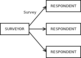 First, the survey is distributed by the surveyor to all the respondents in the topology: